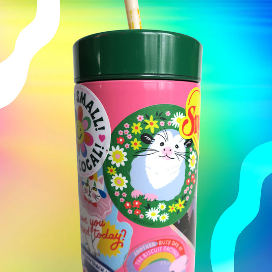 Wildflower Opossum Vinyl Sticker